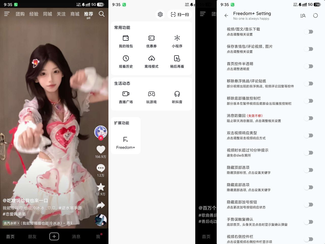 说明:内置Frdom+多功能模块,可无水印下载图片视频,文案复制,防烧屏,自动播放,隐藏标签等