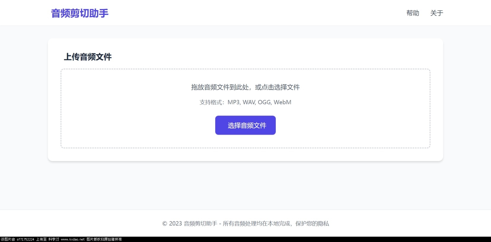 1. 上传音频点击"选择音频文件"按钮或直接拖放音频文件到上传区域。支持MP3、WAV、OGG和WebM格式。