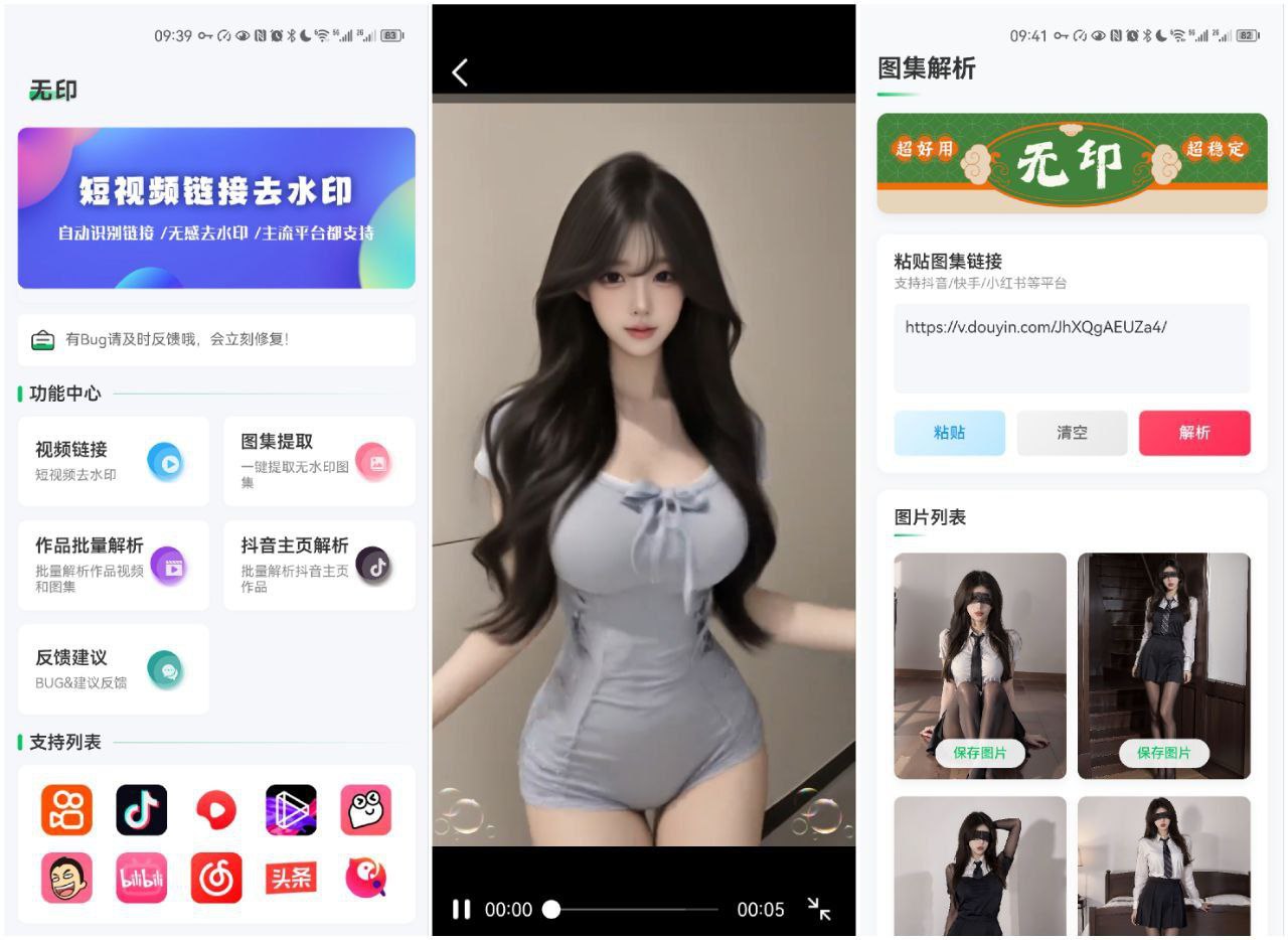 说明:支持视频、图片双格式去水印,解析速度快,全程免费,主流短视频平台的水印基本都能搞定
