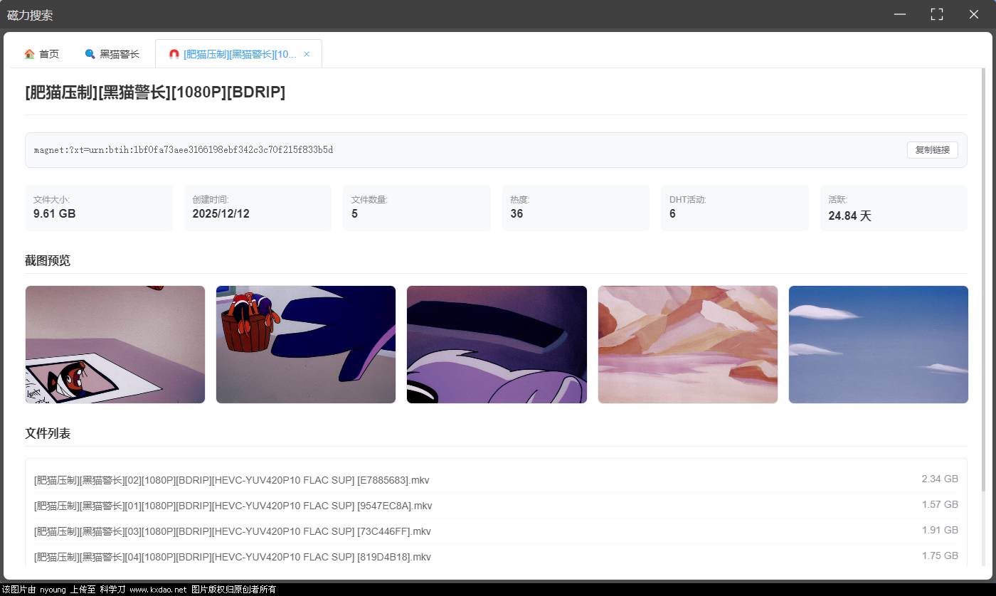 自己做的磁力搜索软件, 可以预览截图,下载之前先看看,防止下载错了 可以查看磁力链接里的文件, 可以查看DHT活动数和活跃天数,挑选数值高的下载速度快 无广告 纯净 轻点搞 容易崩 ![]() 蓝奏盘:https://nyoung.lanzoub.com/b00tc7r3je 密码:3p7m |