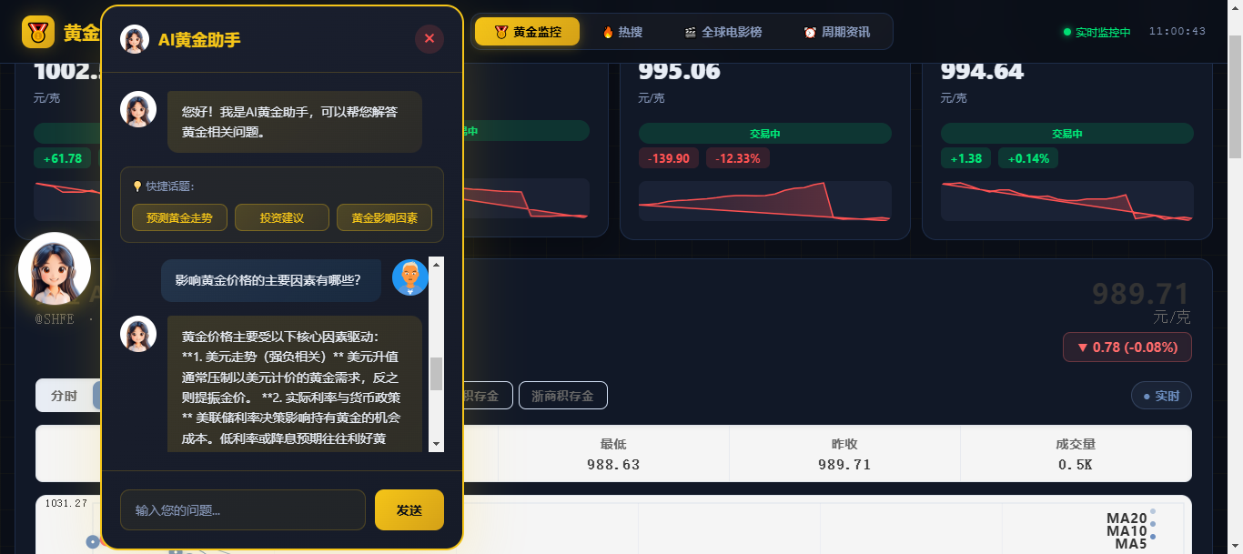 黄金价格实时监控源码(集成K线图/舆情模块/AI 客服 下载地址: