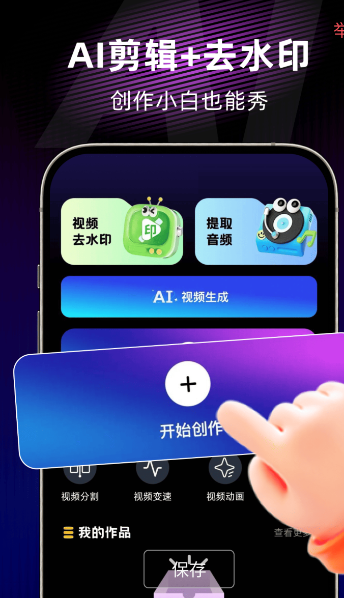- 背景音乐智能匹配、音效添加、音量调节和音频分离